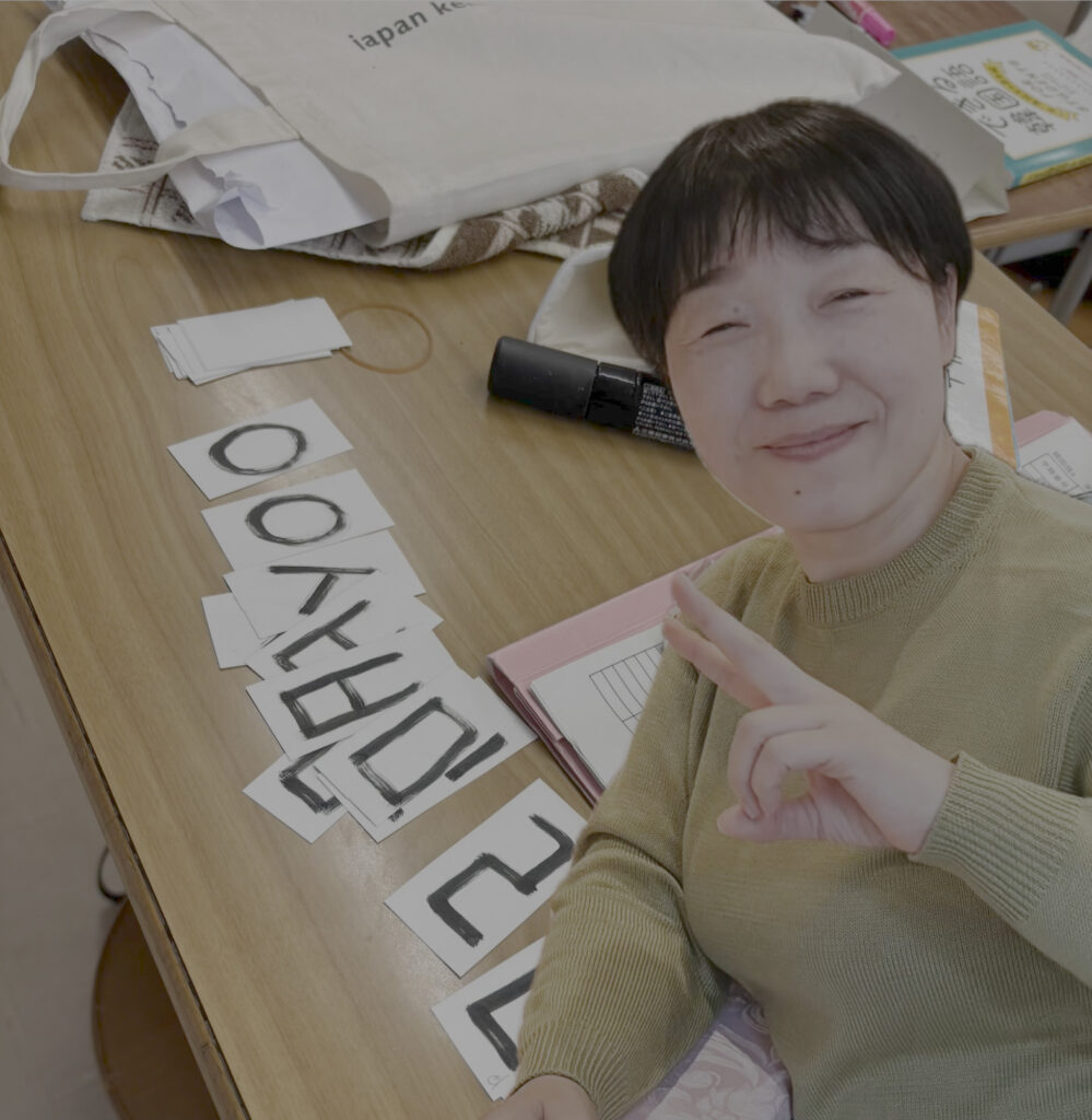 初回の授業では、学習への親しみを深めるための導入として「マイハングルカード」の制作を行いました。自分専用のカードを作るという体験型のアクティビティに、生徒たちは非常に高い関心を示していました。